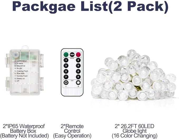 • 【What You Get:】 2 Pack 26.2FT/8M 60 LED battery operated LED Globe String lights with remote control and our YoTelim’s professional & kind service. Customer’s satisfaction is extremely important to us, If you have any question on the battery powered led star lights , Please don’t hesitate to contact us. We will do our best to help you to solve it.