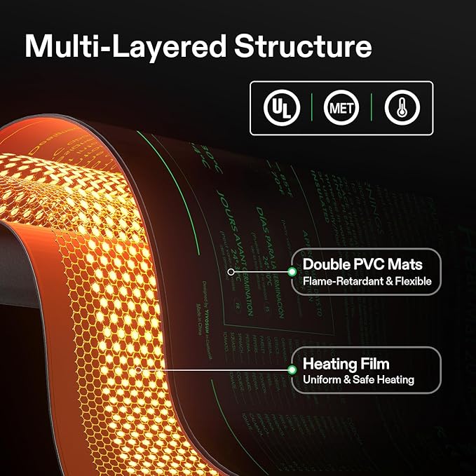 • Reliable Results: The VIVOSUN professional heat mat maintains optimal temperatures around 68-86℉ (20-30℃), perfect for Seedling start and cutting propagation; Made from durable PVC material, it's designed to last