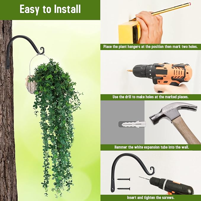 • 【MUTI-PURPOSE】 Heavy-duty hanging plant brackets are ideal for hanging large bird feeders, heavy lanterns, flower pots, baskets, wind chimes use. Whether indoor or outdoor, they can bring you beauty and elegance.