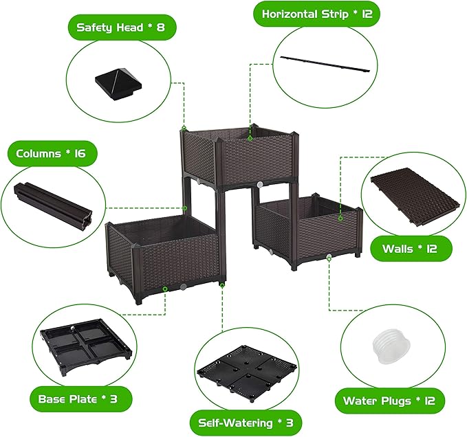 D'vine Dev Planter Raised Beds - Elevated Planter Garden Box with Drainage Plug Raised Garden Beds for Vegetable/Flower/Herb Outdoor Standing Planter Beds Gardening Kit, RGB-3