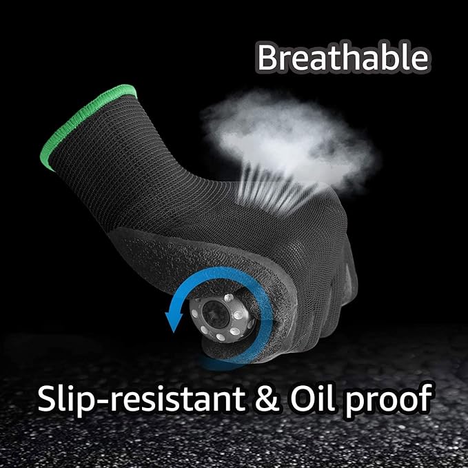 • TEXTURED COATING: Latex/rubber palm and finger crinkle coating, provides Anti-slip, Cut and Puncture resistant and repels light liquids.
