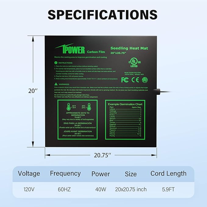 • Package Included: 1 pack 20'' x 20.75" seedling heat mat.