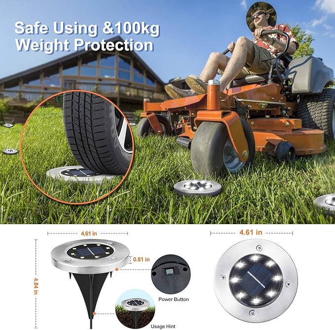• Easy To Instal: Each light has two spikes, Turn on the switch under the cap and push the spikes into the soil with the spikes; If the ground is too hard, do not hammer it with force; Soften the ground with water, dig a suitable hole for the spike