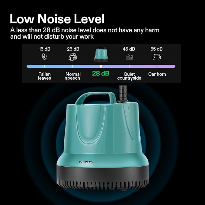 • Ultra-Quiet & Durable: Only making 28db sound, this pump is super quiet, so there is no trouble of getting disturbed while the pump is working; The pump’s ceramic shaft core uses a high-strength wear-resistant rotor that is both acid resistant and corrosion resistant