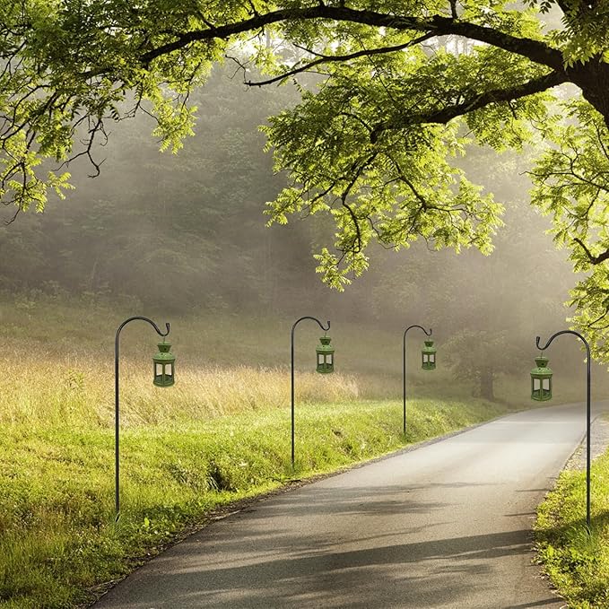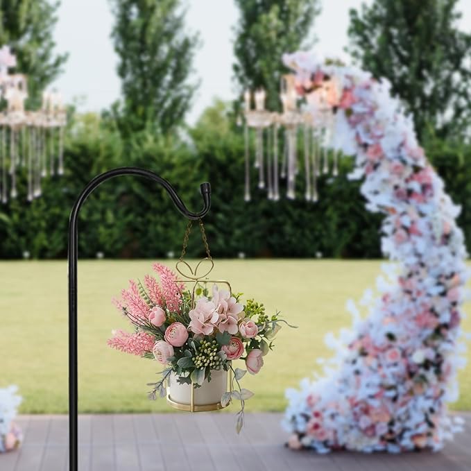 • Multiple applications of shepherd hooks: Garden shepherd's hooks are suitable for outdoor wedding aisles, and can also be used to hang flower pots, bird feeders, solar lights, lanterns, flower pots,decorations, flower balls, garden lights, glass bottles, holiday decorations, string lights, bird baths, plant racks and other garden decorations