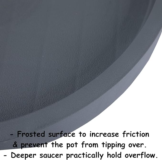 • [Non-slip & Easy to Clean Surface]: The surface of the tray is frosted to increase friction with the bottom of the planter, ensuring that the planter will not topple over during movement. The internal height of the saucer is 1inch deep enough, so it can practically catch and hold overflow. There are no drain holes on the surface, fortunately you can drill your own holes if needed.