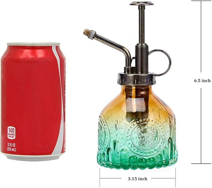 Glass vintage Plant Spritzer Spray Bottle, Succulent Watering Bottle with Top Pump, Small Plant Sprayer Mister Watering Can for Indoor Outdoor House Plant - Green Brown Gradient