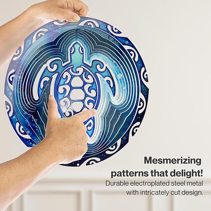 • Makes for beautiful garden gifts for women and anyone who loves art Enjoy the beautiful kinetic garden sculpture Turtle wind spinners shimmering in the background.