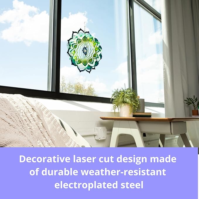 • Durable and Mesmerizing: Crafted from weather-resistant electroplated steel metal with an intricate laser-cut design, this wind spinner showcases mesmerizing patterns that captivate onlookers.
