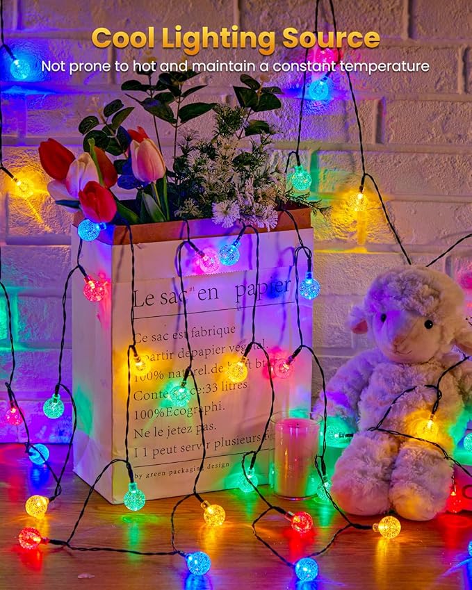 Brightown Solar String Lights Outdoor 60 Led 35.6 Feet Crystal Globe Lights with 8 Lighting Modes, Waterproof Solar Powered Patio Lights for Garden Yard Porch Wedding Party Decor (Multicolor)