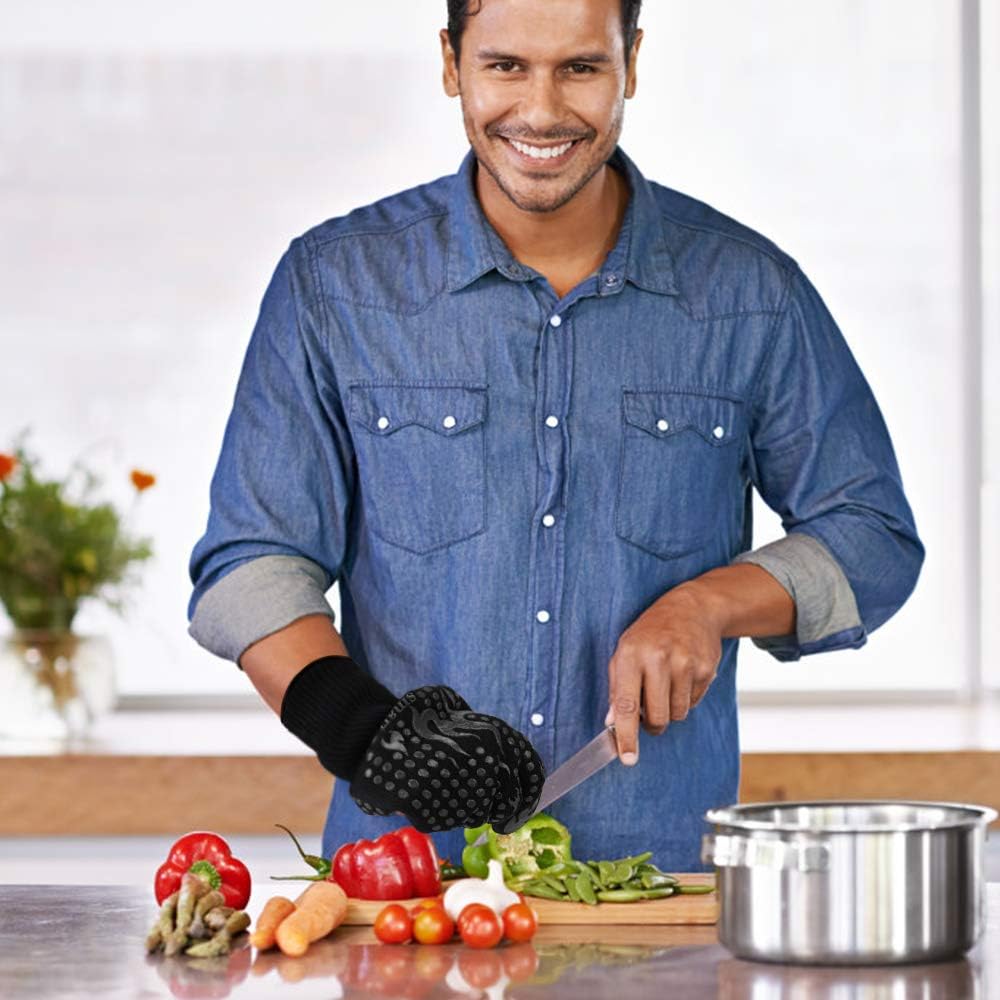 • Heat Resistant: Our BBQ gloves are designed to provide protection for your hands while cooking, grilling, baking, or handling hot pots. With an instant heat resistance of up to 1472°F, these gloves are perfect for high-temperature cooking and baking.