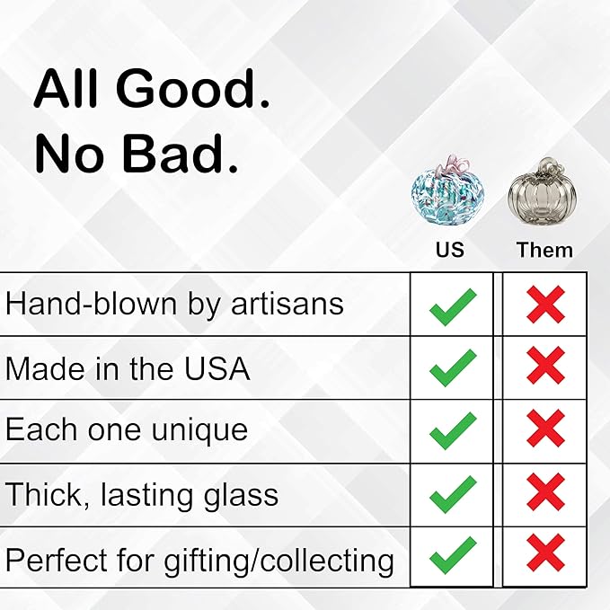 • Each glass pumpkin is carefully hand-crafted out of glass, making every piece unique in color and shape.