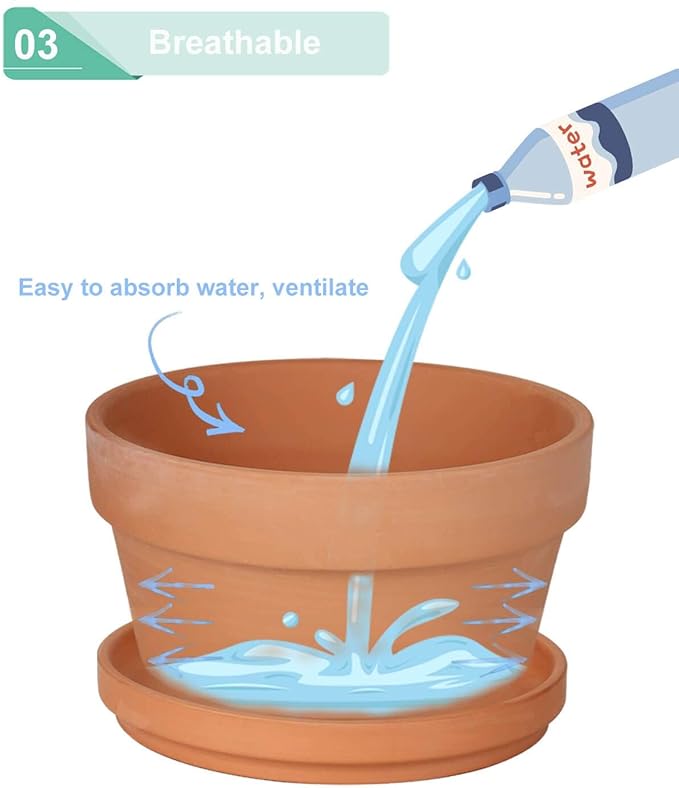 • Quality Materials: Terra cotta pots Making from high-quality clay through high-temperature baking, the walls of the pots draw the water out of the soil to help the soil dry quicker.