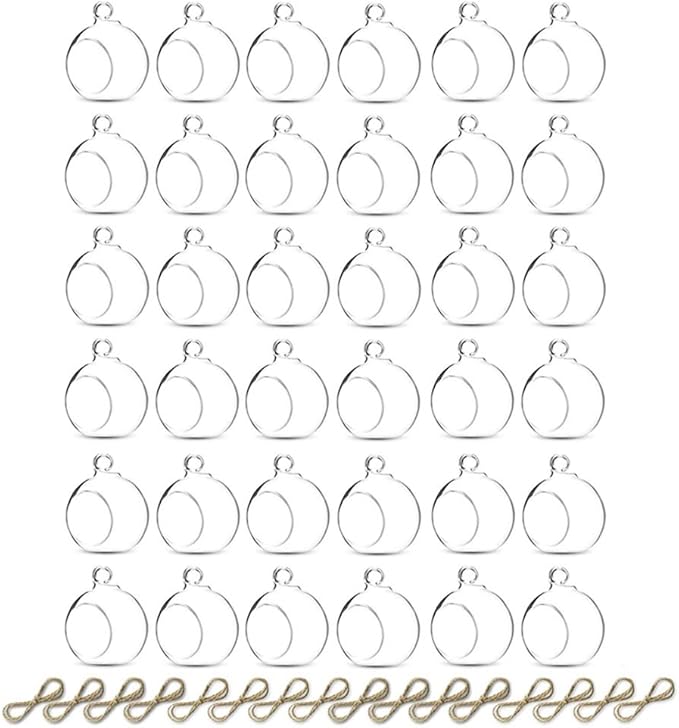 Sziqiqi Hanging Glass Globes Orbs Tea Light Candle Holders fillable with Trinkets for Wedding Ornaments, Wedding Birthday Christmas Party Centerpiece Accessory 2.36inch 30pcs +6 Extra