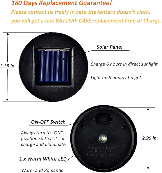 • 【What it Can Do】The solar lantern lights are designed mainly for outdoor lighting and decoration such as backyard gazebo deck and courtyard, but you can also charge the lights outdoors then use as indoor lamp because you will get a very pretty accent lighting.