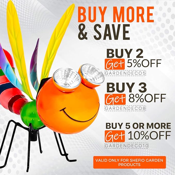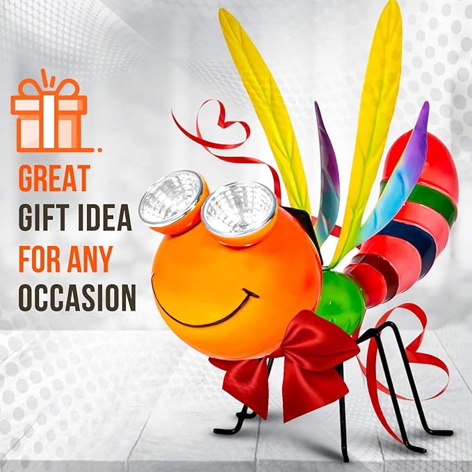 • This solar dragonfly lights outdoor is perfect for your garden. Add charm and serenity to your outdoor space with this dragonfly lawn ornament or large metal yard art.
