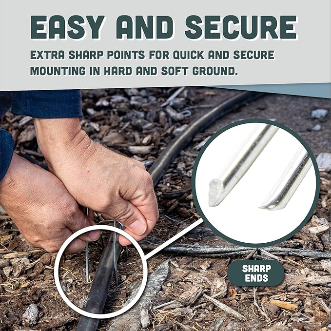 • NO RUST, VERSATILE APPLICATIONS : Easy to use to pin down weed barrier fabric, irrigation hoses, landscape lighting cords. Perfect for anchoring fencing including electric dog fences or holding down sod and garden edging.
