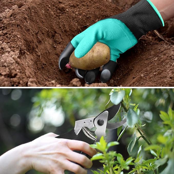 • 1 Pair of Garden Gloves with 4 ABS Claws - Nylon Knitting on the Back of the Hand, Comfortable and Breathable to Keep the Hands Cool and Dry Even in Summer, Easy Solution for Digging Loose Soil and Planting!