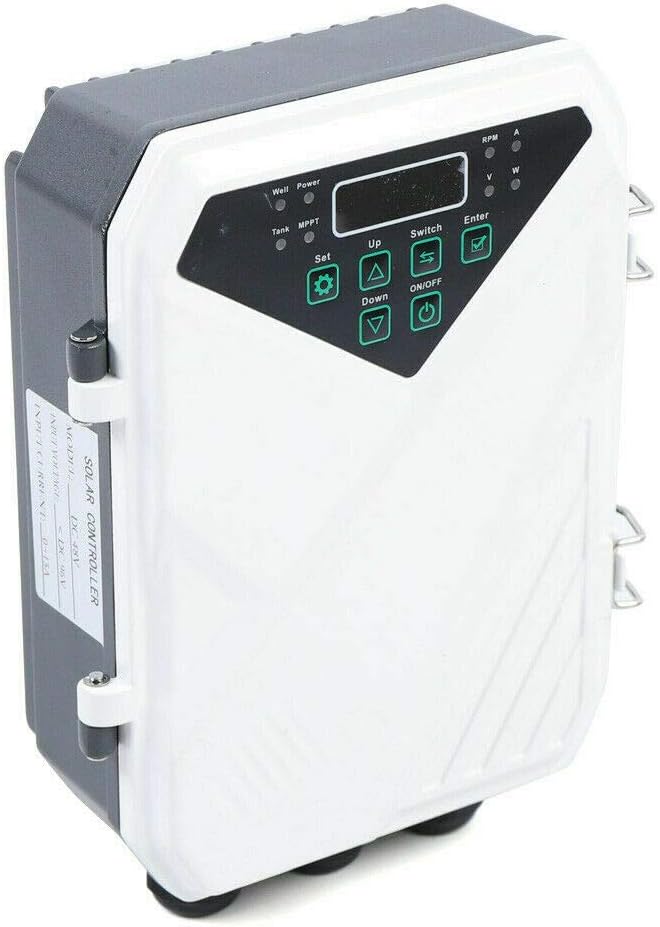 • 【MPPT CONTROLLER】The solar water pump controller drives the high efficient brush-less DC pump motor, utilizing the latest MPPT technology to ensure maximum flow is delivered under all light conditions. It also protects the submersible pump from frequent start up in low light conditions, overheating and running dry.
