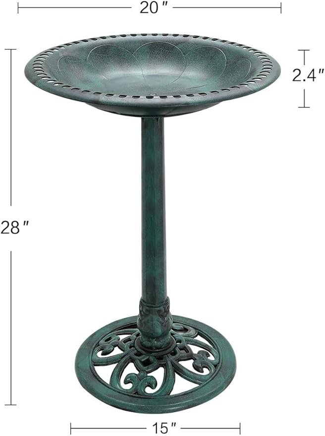 • ▶Size: The size of this bird bath: 20" (diameter) x 28.25" (H); water capacity: 0.8 gallons, which can ensure enough water and food, and beautify your garden.
