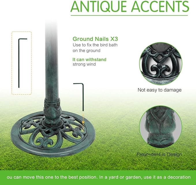 • ▶Decoration: This bird bath is designed in European style as a whole. The base or other parts have delicate European lines. This must be the perfect decoration for your garden, terrace, lawn, etc.