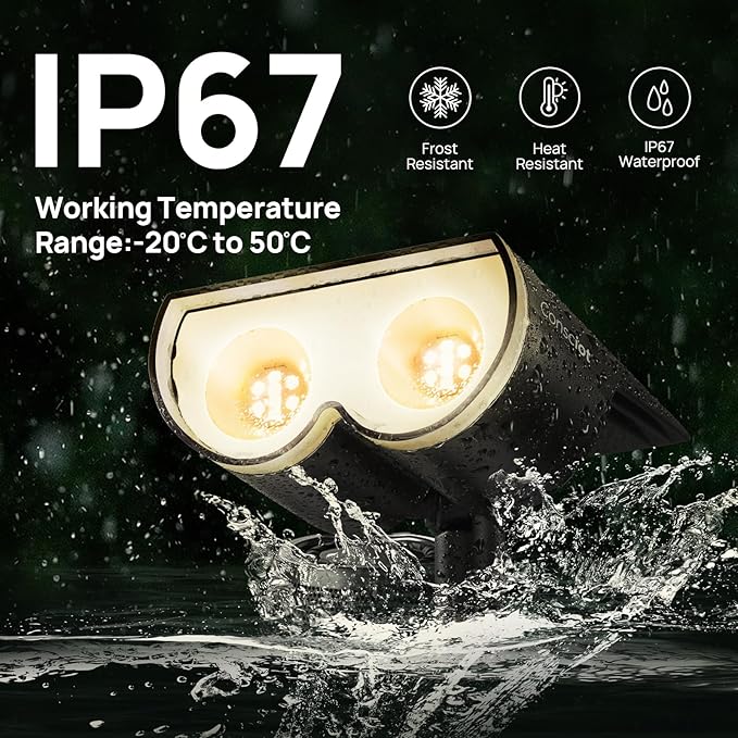 • [IP67 Waterproof & Durable] : IP67 waterproof, Heat Resistant and Frost Resistant, no matter it rains, snows, frost, high heat or other extreme weather, you can use the solar landscape lights at ease. Made of high-quality and premium ABS material, closely fit to form a seamless light head, leaving no chance for the rust and water to erode the light, solid and durable enough for longer lifespan.