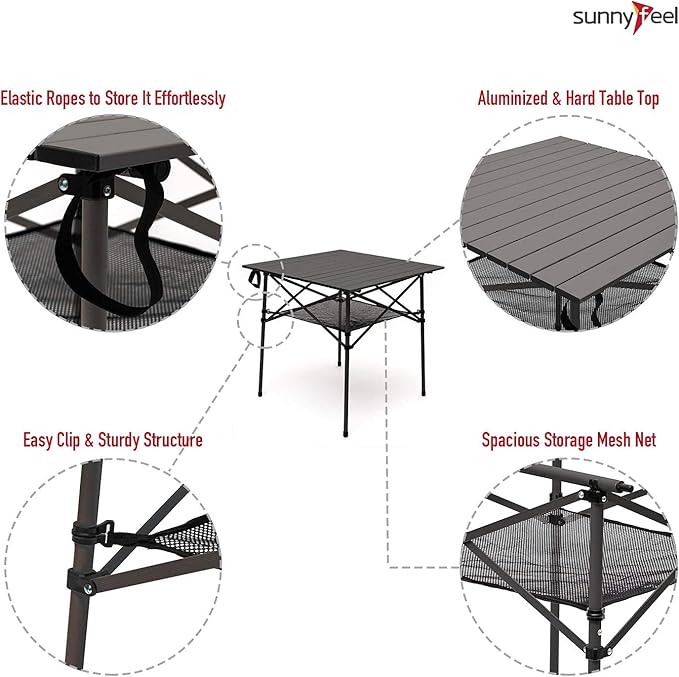 SUNNYFEEL Outdoor Folding Table | Lightweight Compact Aluminum Camping Table, Roll Up Top 4 People Portable Camp Square Tables with Carry Bag for Picnic/Cooking/Beach/Travel/BBQ