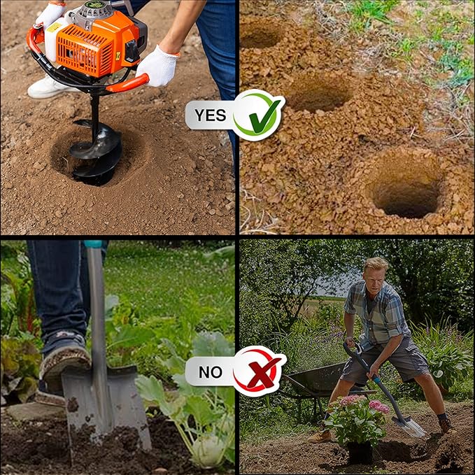 • 【Specifications】The auger drill bit for planting has a 0.79 inch(2.0cm) inner diameter shaft that fits most common auger powerheads, not recommended for hand power drills due to its larger size, compatible with post hole auger gas powered.