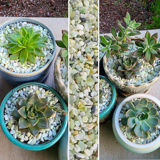 • 🌵【NATURAL STONES】The combo of natural green and white rocks looks real classy and fresh. Their surface is all clear and smooth. These babies being all-natural, they're gonna stick around for a good while.