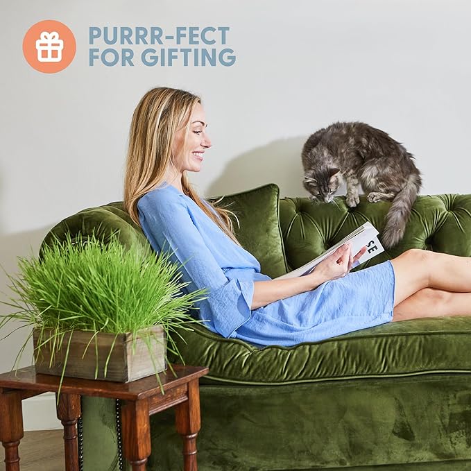 • Part Cat Grass, Part Decor: Our rustic wood planter is a lovely addition to any home. The purrfect cat gift for cat moms everywhere, our simple and elegant cat grass growing kit keeps your house looking greener and cleaner.