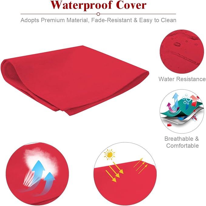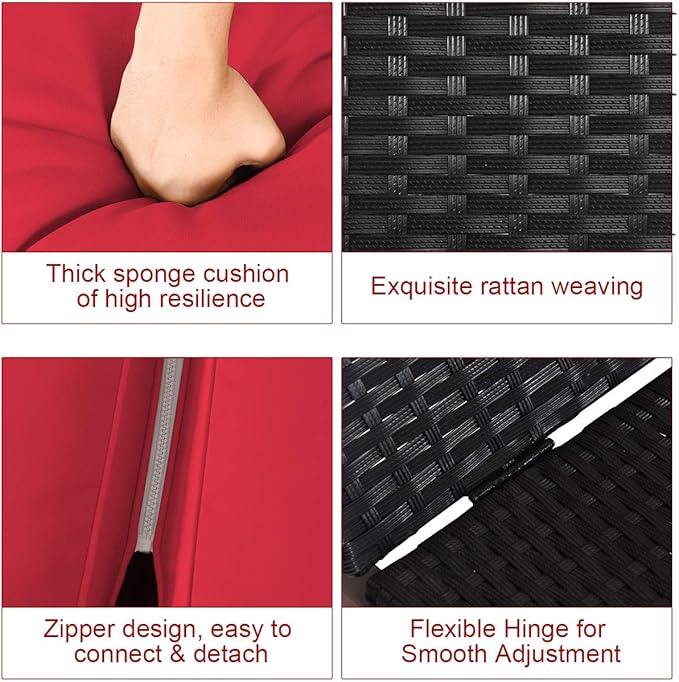Tangkula 2-Person Patio Lounge Chair, Outdoor Rattan Double Wicker Daybed Chaise Lounge Chair with Adjustable Backrest Wheels & Cushion, Patio Sofa for Garden Lawn Backyard (Red)