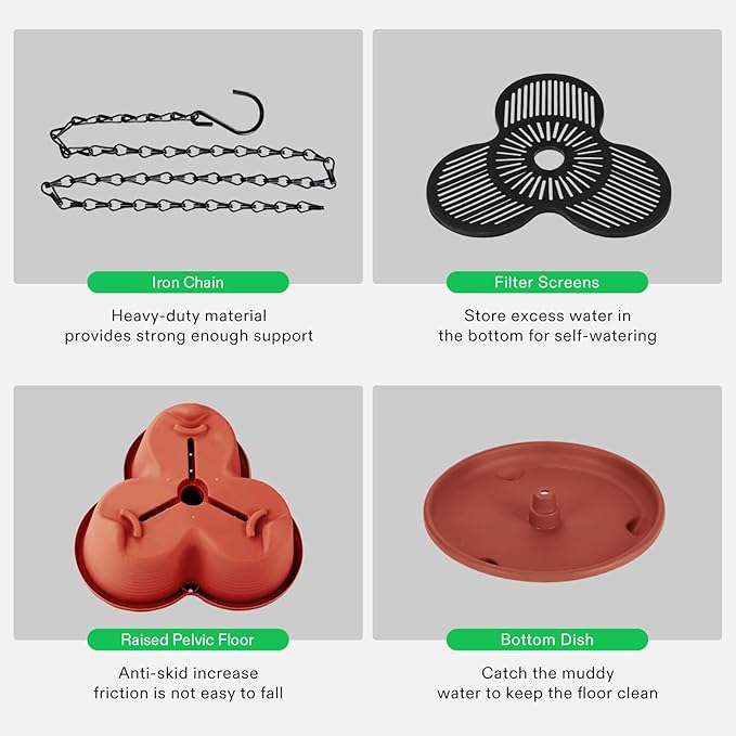 • Different Combinations: You can stack 2 or 3 or 4 tier; This planter can be hang with chains or used on a cylindrical rod
