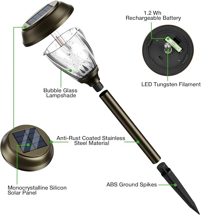 • Ready-to-Present Solar Pathway Lights Outdoor - Use the included to fix the outdoor solar lights place under the direct sunlight. Optimal size for gifting during holidays, weddings, or housewarmings. Trusted outdoor solar lights for yard safety and creating atmospheric evenings at patios/landscapes.