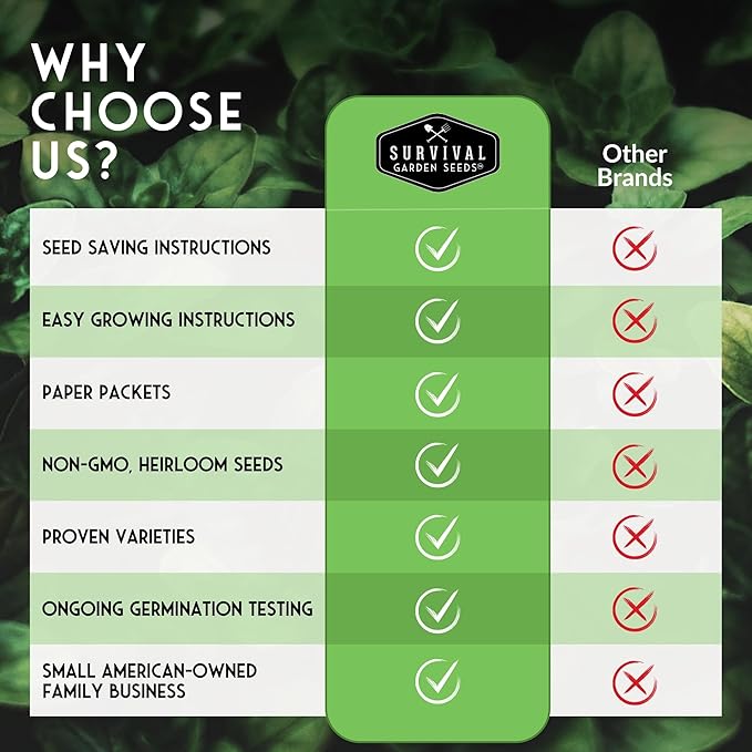 • Small American Family-Owned Business - We’re committed to always providing fresh, high-quality seeds for you to plant now or to store for future growing seasons. We pledge to sell only safe, non-hybrid non-GMO heirloom seeds that are always open-pollinated, untreated, and tested to ensure the best germination rates. They will remain viable for years if stored properly in a cool dry location.