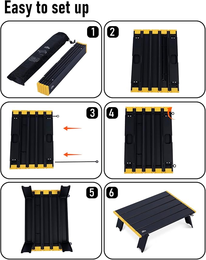 • Ultralight, made of high quality aluminum alloy 6063, only 2.4 lbs; Max Load 66 lbs; Unlike wooden or nylon-top tables, this table is durable, waterproof, corrosion-resistant, easy to clean; Heat resistant, can put your stove on