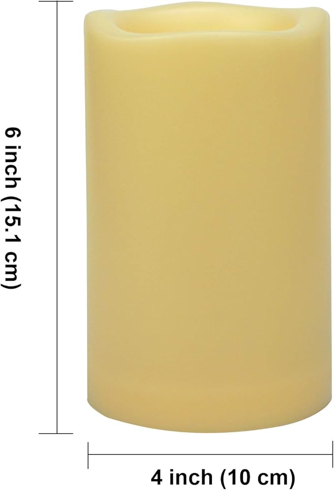 Waterproof Outdoor Flameless Candles with Remote, Set of 2, Large 4” x 6” Battery Operated Electric LED Pillar Candle Set for Home Décor Party Wedding Supplies Garden Christmas Decoration Gift