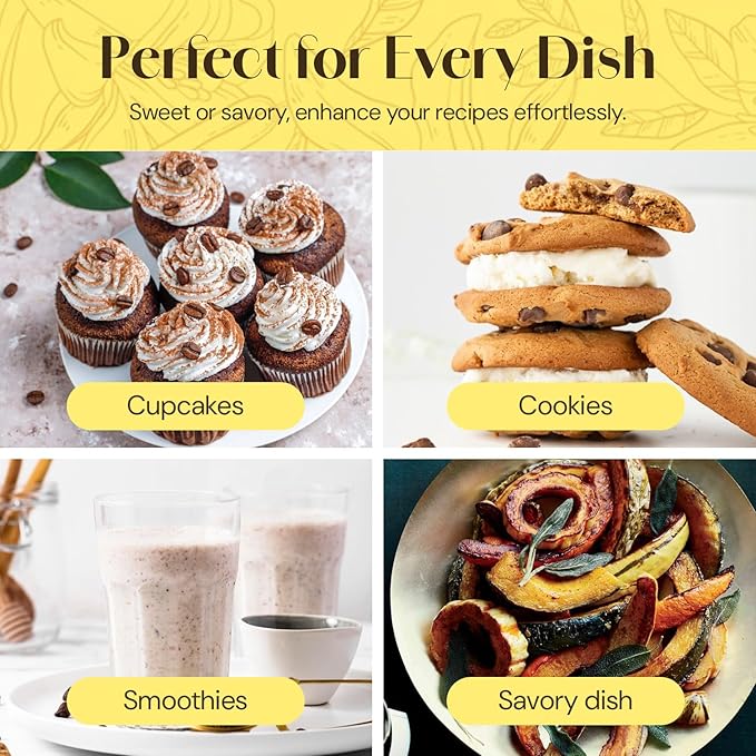 • Flavorful Drinks: This premium vanilla flavor is suitable for smoothies, protein shakes, hot and cold beverages, coffee, tea, bullet-coffee, and chai