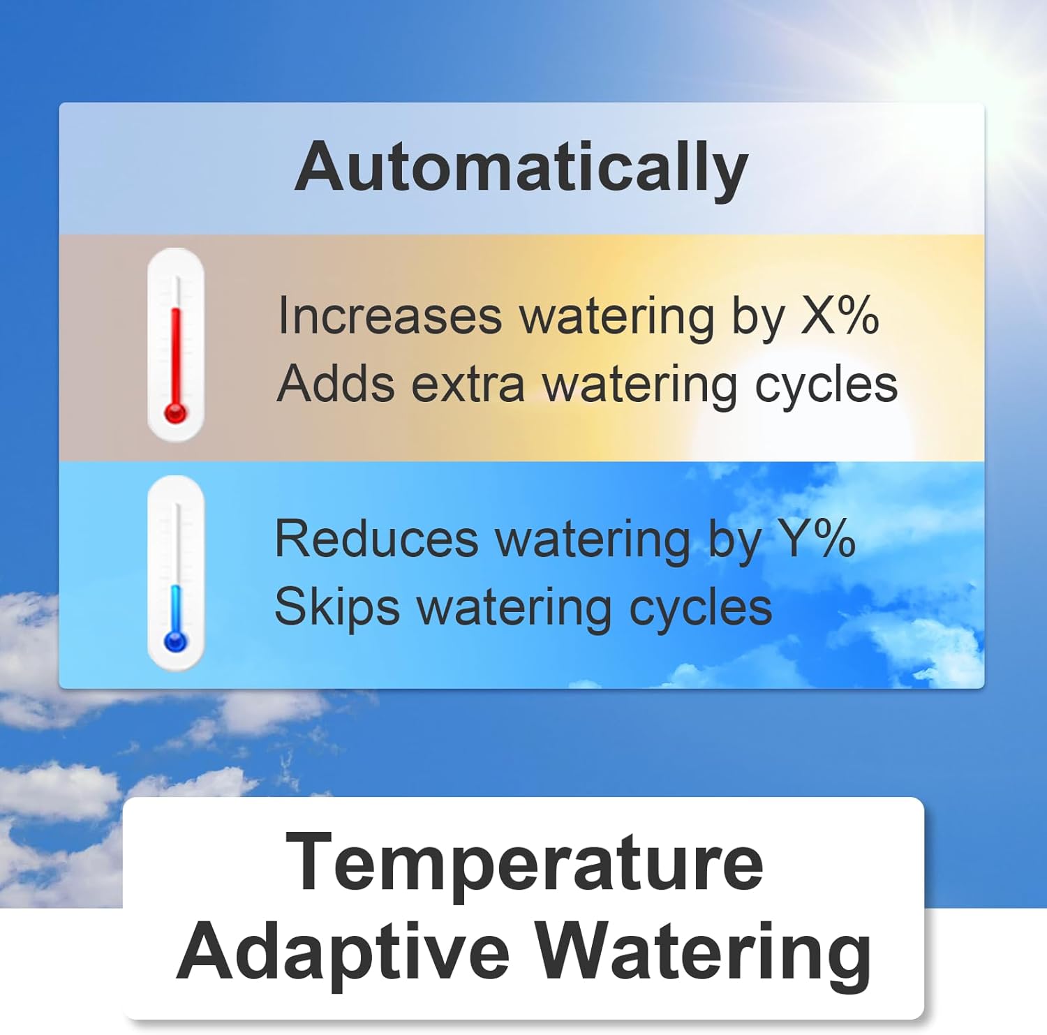 • Wireless Water Timer with Weather-Adaptive Control: Manage your garden watering system from anywhere via mobile/web apps. This smart sprinkler timer automatically adjusts irrigation based on real-time weather data, ensuring efficient water usage and conservation