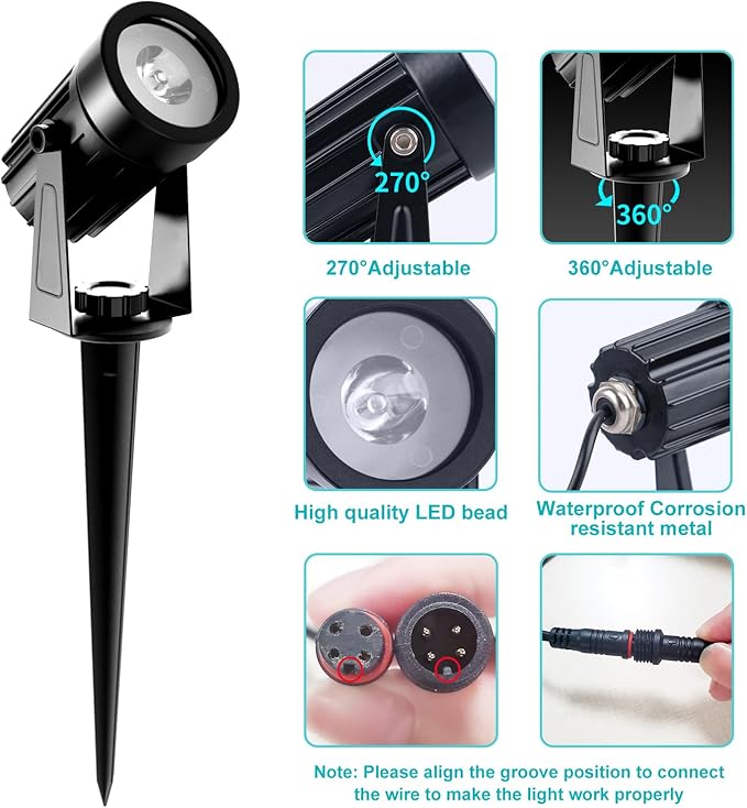 • Adjustable Light & Solar Panel: The solar panel and light can be installed in the ground or mounted on the wall with included screws. Each ground light with 118inch/3m cable, 270° adjustable freely up or down to meet different requirements.