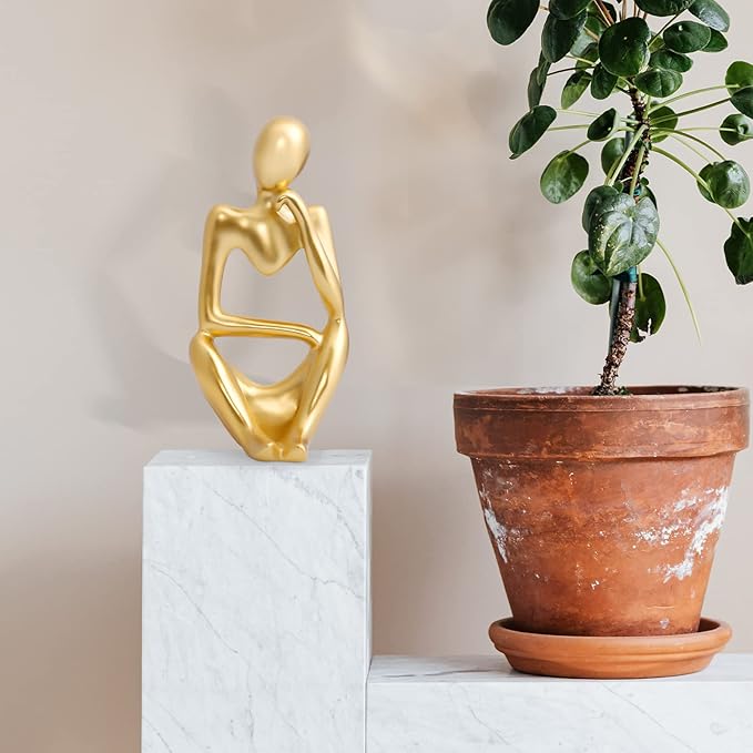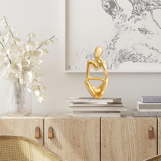 INNOLITES Resin Statue Thinker Style Decoration Abstract Sculptures Collectible Figurines for Home Decor Modern Office Shelf Desktop(Gold-Right
