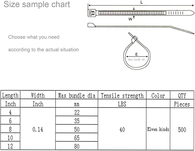 • ★【Great Design】Self-locking fastener design, sturdy and durable, easy to operate. The width of our cable tie is 0.14 inch/3.6 mm, which makes the cable tie stronger than the same size cable tie on the market and tensile strength could handles most purpose of binding in life.