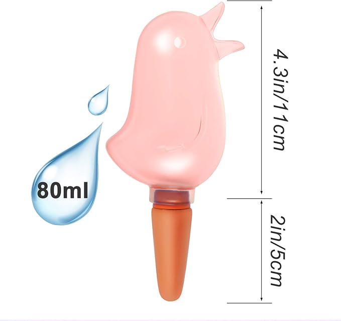 • 【Convenient to Use】 You only need to fill the automatic watering globe with water and insert it into the soil of the potted plants, and they will automatically drip water for the plants. The specially designed beak and tail make it easy for you to add water to these watering devices and put them in potted plants.