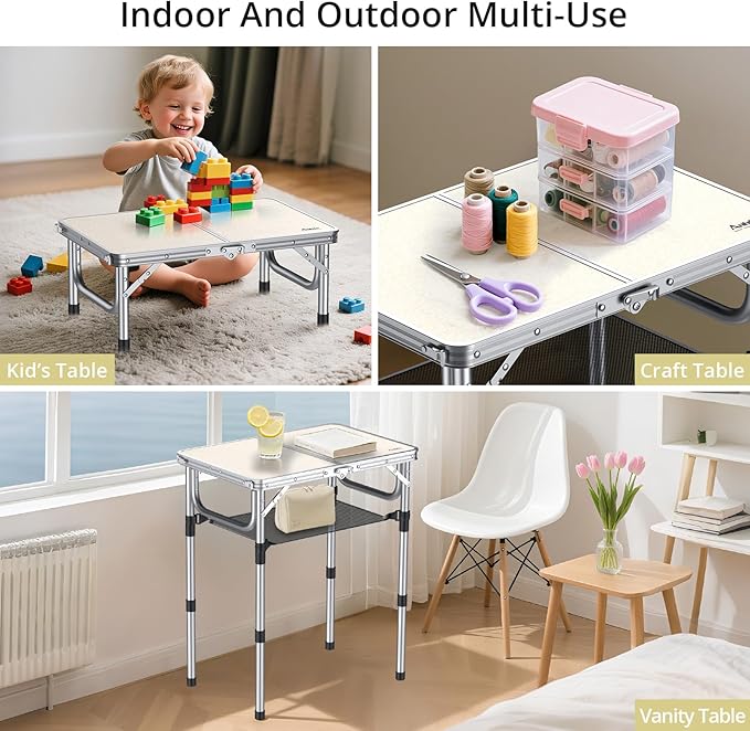 • Multifunctional Table for Various Occasions: This camping folding table is perfect for outdoor and indoor use. It can be used as BBQ grill side table, picnic table, card games table, serving table for dining, working and study table for adult and kids, fishing table