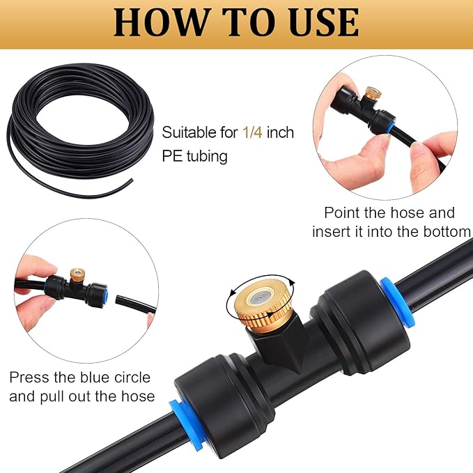 • Wide range of use: our misting nozzle tees for 1/4 inch hoses are the necessary accessories to make fan misting system, misting cooling system, plant watering system, helping you cool down the hot weather, widely suitable for patios, decks, porches, pool and other areas