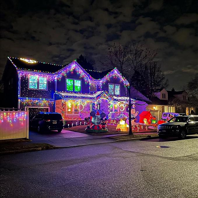 • 【High Quality Outdoor Icicle Lights】400LED Icicle Christmas Lights straight lighting length is 33ft, dripping lengths is 1.32ft, 1.65ft and 2.31ft. 9.84ft extension cable is long enough to connect the light string into the outlet. Durable wiring and sealed beads made this icicle string lights could use many years without damage. This Led string lights is a great value for money option.