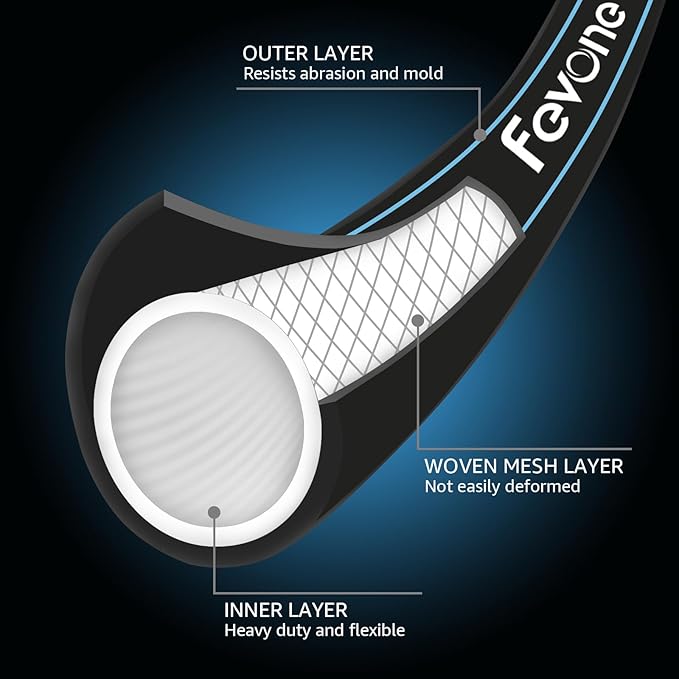 Fevone 25 ft Garden Hose, Heavy Duty Water Hose, Hybrid Polymer, Kink Resistance, Flexible, Durable, Solid Brass Fittings, 3/4" GHT, 5/8" ID, 600 PSI,