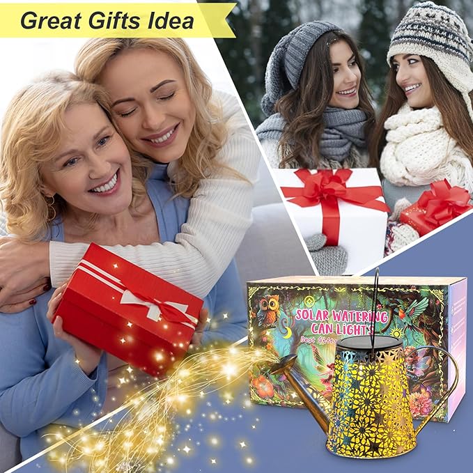 VOOKRY Solar Watering Can Lights, Large Retro Metal Hanging Solar Lights Outdoor Waterproof, Gardening Gifts for Mom Grandma Women Birthday, Garden Decor Yard Light Outside for Porch Landscape Patio