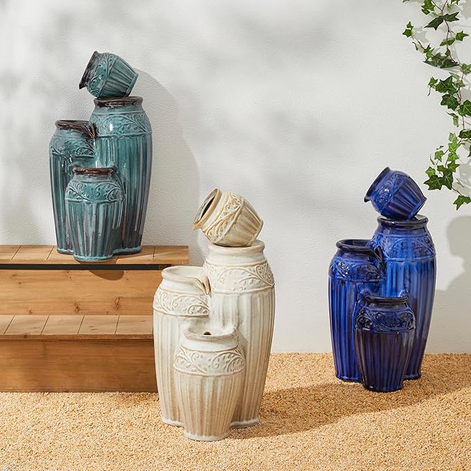 • Stunning Cobalt Blue & Durable Ceramic --- Crafted from high-quality ceramic with exquisite craftsmanship, this Glitzhome Outdoor Water Fountain is built to withstand the elements. Its weather-resistant and rust-proof design ensures long-lasting durability, while the lightweight structure makes it easy to move and store when needed. Whether placed in your garden, patio, or yard, this ceramic blue fountain maintains its pristine look through seasons, promising reliable beauty for years.​