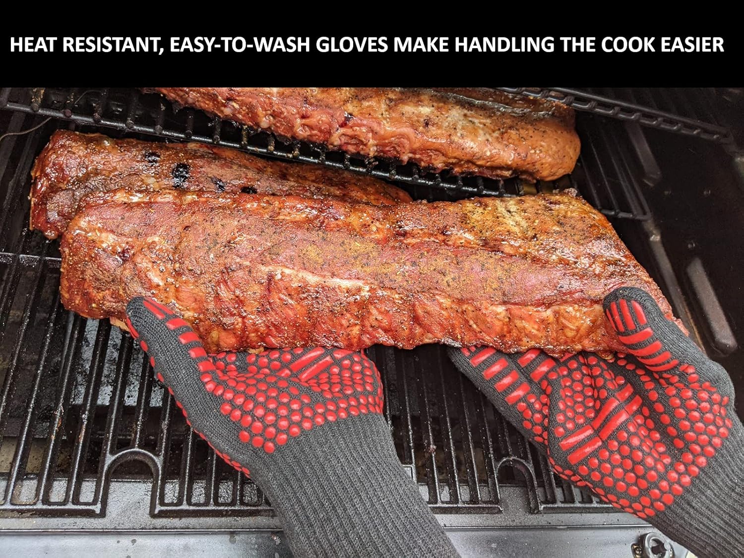 • Premium grill, barbeque, smoking, smoker accessories kit includes pistol grip flavor and marinade injector gun, heat resistant nonslip grill bbq and oven gloves and a silicone basting bbq mop brush
