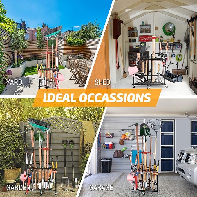• 【Prompt Customer Service】: Measuring 24.6"L x 17.7"W x 24.6"H, our garden tool storage rack is designed to meet your needs. If you encounter any issues please don't hesitate to contact us. Our dedicated team is always available to provide professional solutions.
